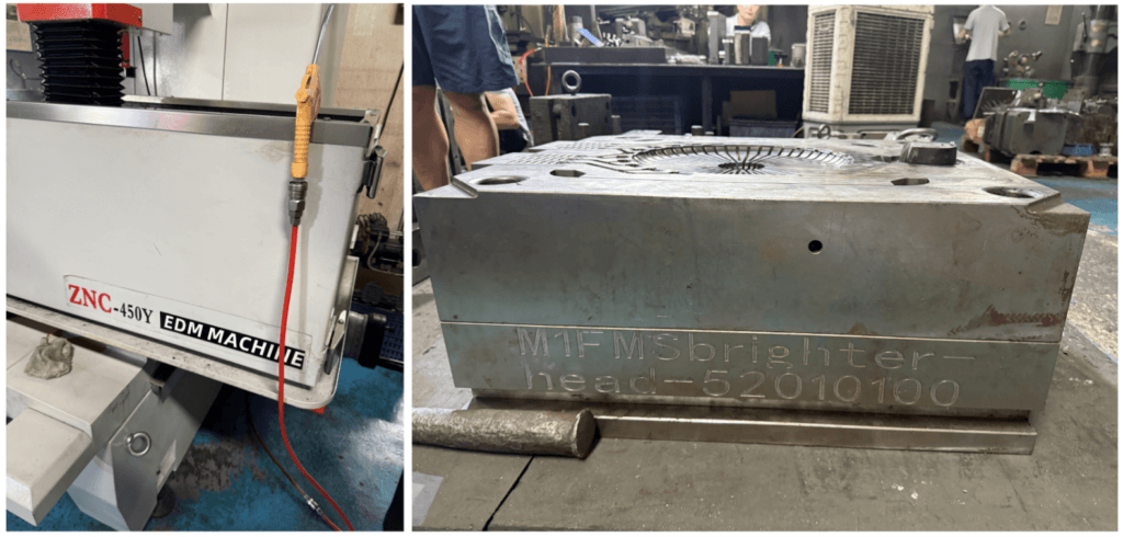 I was advised to press forward with manufacturing because 150% is bonkers and would have to go down. So two months later in Zhongshan, China, I’m staring at a heatsink that looks completely fucked. Due to a miscommunication with the factory, the injection pins were moved inside the heatsink fins, causing the cylindrical extrusions below. That being said, I had expected something to go wrong, so I was glad that we just needed to remake a part — at least the factory existed.