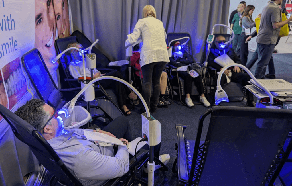 I also found it fascinating how eager people were to try out prototype hardware that could do some serious harm without ever signing a waiver or asking questions. I saw long lines for testing exoskeletons, teeth-whitening lights, headphones that shock you, and massage chairs that use motors to lift your arms up and down. Self preservation instincts were pretty low! People queued in lines without even knowing what they were for. I personally saw a few exoskeletons glitch out, causing people to keep running even though they didn’t want to.