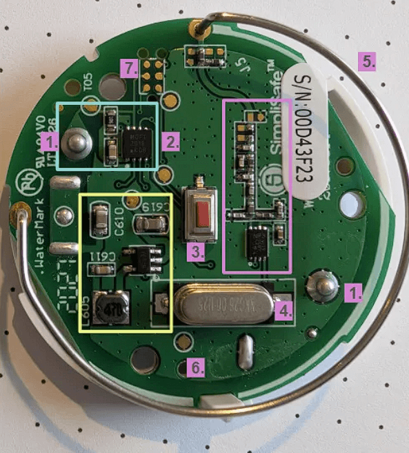 The Simplisafe Water Sensor uses two stacked custom circuit boards. No dev kits here!